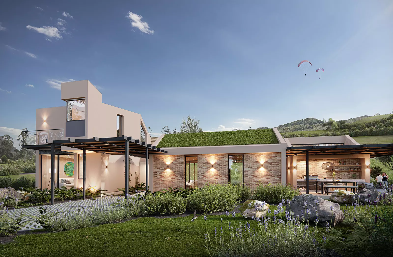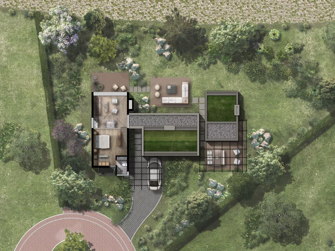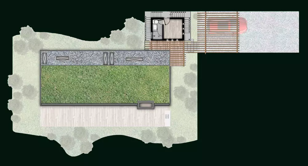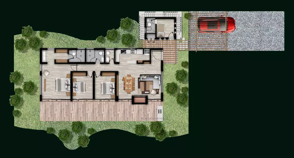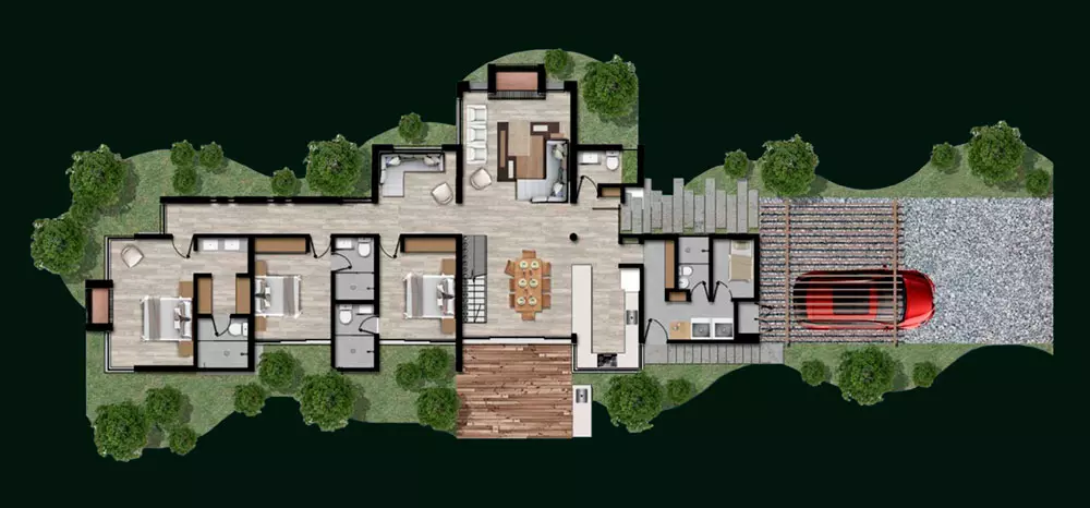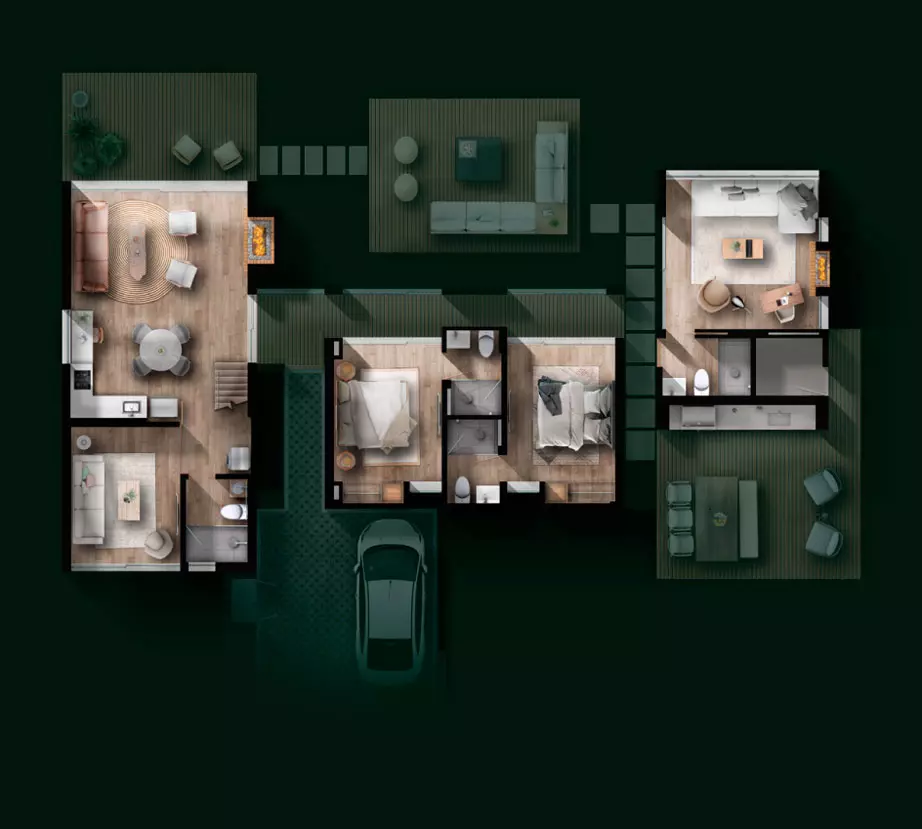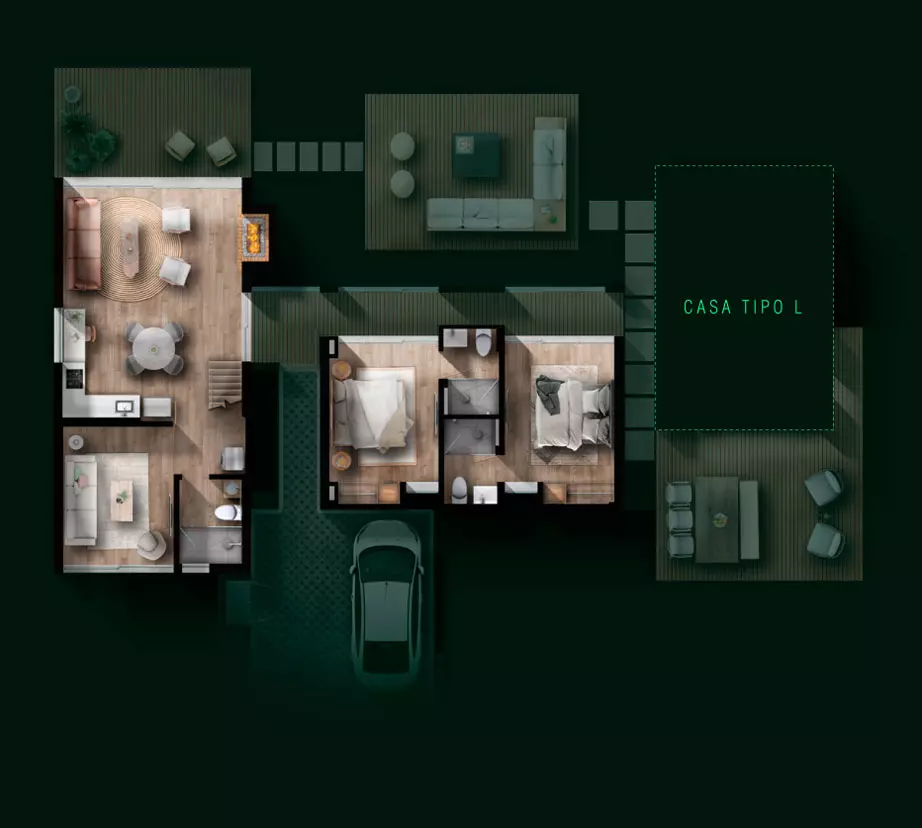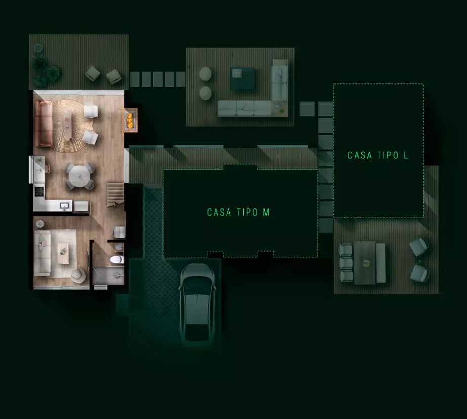 Diseño original y propiedad intelectual de KUBIK LAB S.A.S. Todos los derechos reservados. Todas las imágenes publicitarias, renders, videos, son imágenes representativas y pueden tener variaciones y modificaciones con la realidad. El proyecto puede llegar a tener modificaciones en el urbanismo de acuerdo con las decisiones del promotor. La vegetación existente contra linderos del lote es una imagen representativa y no está incluida dentro de la venta del lote. Las medidas son de referencia y pueden tener variaciones de acuerdo con la coordinación y desarrollo técnico y arquitectónico del proyecto. La distribución de los módulos y arquitectura en general se debe ajustar a la topografía y condiciones de cada lote. El paisajismo de cada lote deberá cumplir la normativa establecida dentro del reglamento interno del condominio y planimetría correspondiente al RPH